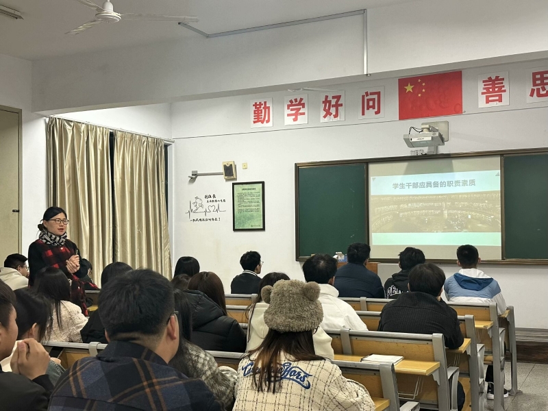 首先,赵倩老师为学生干部应具备的职责素质提出了四点基本要求:学——学会做人做事读书,生——具备面对各种困难的生存能力,干——做事要自觉创新,团结永不服输,部——找到自己在班集体的位置,认清自己作用。在阐述完概念后,赵倩老师让大家相互讨论学生干部应具备的素质,并通过举例告诉我们要以他人的价值标准和能力作为基础实现自己的目标。接着,又从处理学习与工作的关系入手,让同学们要做到严于律己,建立和维护人际关系。到了活动环节,老师让大家提出在做学生干部工作时遇到的问题并讨论解决。最后,赵老师要求学生干部要公平公正开展各项工作、尊重学生个性、团结同学。