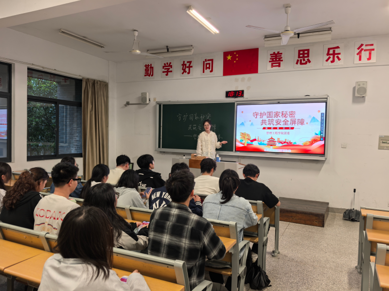 活动伊始,许靓从国家安全的宏观视角出发,阐述了保密工作对于国家稳定、社会发展的重要意义,强调每位师生都肩负着维护国家秘密的神圣使命,引导同学们深刻认识保密工作的价值,增强使命感。在保密知识专题学习环节,许靓通过案例分析和法规解读,全体学生对保密工作的重要性、复杂性和严肃性有了更为深刻的认识。活动现场,学生们还参与了中国普法微信公众号上的网络保密知识竞答活动,进一步巩固和强化了对保密知识的掌握,切实提升了在实际操作中应对保密工作的能力。