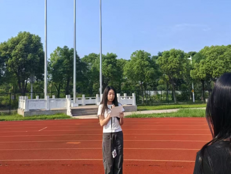 晨光初现时,同学们整齐列队于国旗台下。当国歌奏响,五星红旗冉冉升起,全体师生肃穆行礼,目光中饱含对诚信精神的敬畏与践行的决心。随后,学生代表薛木子以“诚信为基,筑梦未来”为主题发表讲话,她结合校园生活实例,从课堂诚信、学术诚信、生活诚信三个维度展开:“作业不抄袭是诚信,借物及时还是诚信,考试不作弊更是诚信——诚信不是空洞的口号,而是藏在归还图书馆书籍时的准时、答应同学帮助时的坚守里。”