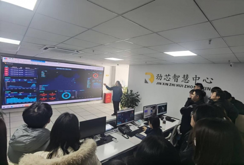 在劲芯智慧中心,学生们结合本学期《智慧物业管理》课程所学,实地观摩了物业数字化管理平台的运行。该中心集成了设备自动监测、能源管理、安防联动、数据可视化等系统,实时展示着项目运营的各项关键指标。企业技术人员现场演示了如何通过数据看板进行预警分析与决策支持,并指出:“数智化转型不是选择题,而是行业发展的必由之路。智慧系统不仅提高了管理效率,还重塑了服务模式和用户体验。”