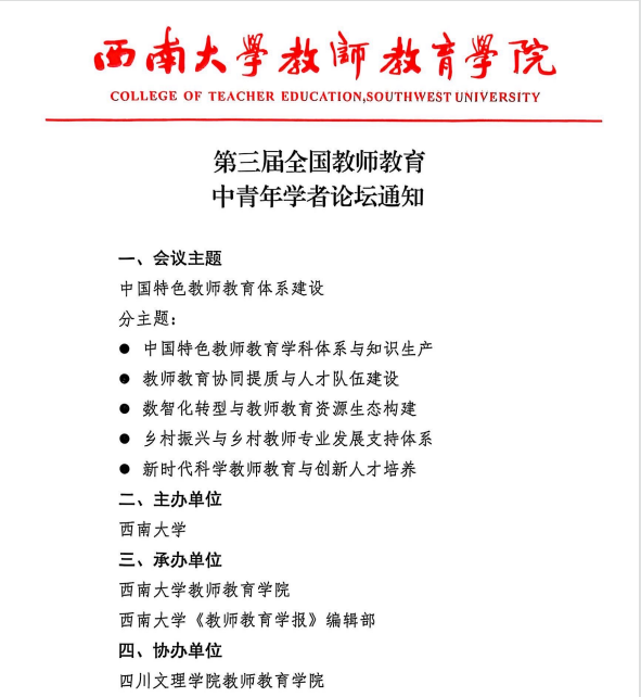 本次论坛的成功举办,不仅彰显了西南大学在教师教育领域的卓越引领力,更充分展现了全国中青年学者锐意创新的蓬勃活力。论坛讨论紧扣国家教育强国战略,从理论构建的知识生产到协同提质的人才培养,为中国特色教师教育体系的发展注入了强劲的学术动能。作为协办方,8827太阳集团官网通过此次高规格、高水平的学术交流,进一步拓展了视野,深化了与全国同行的联系,为太阳集团官网教师教育学科发展、人才培养模式创新汲取了前沿理念与宝贵经验。学院将以此为契机,持续提升办学水平与科研能力,积极融入国家教师教育体系建设大局,为培养新时代高素质专业化创新型教师队伍,服务地方乃至国家教育高质量发展作出新的更大贡献。